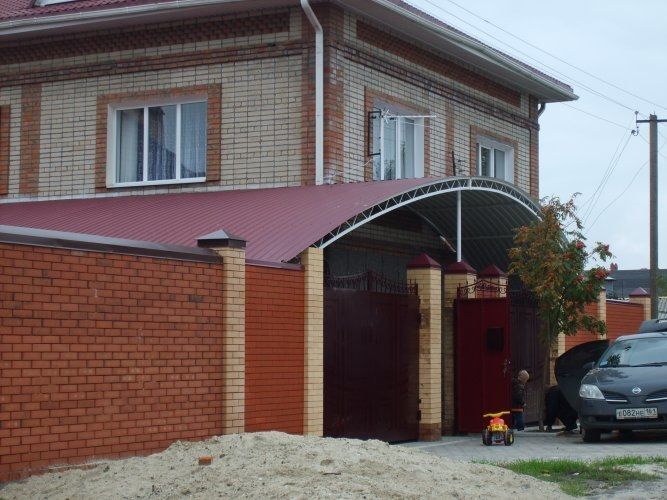 Навесы во дворе из профнастила пример в Узлoвой